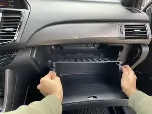 Сожмите внутренние боковые стороны перчаточного ящика, чтобы освободить его.