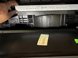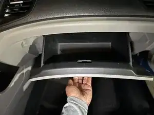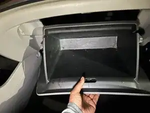 Найдите чёрный штифт на боковой стороне перчаточного ящика и нажмите на него лопаткой.