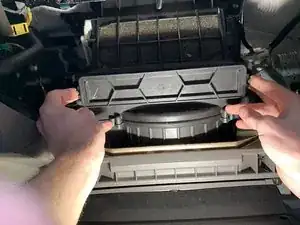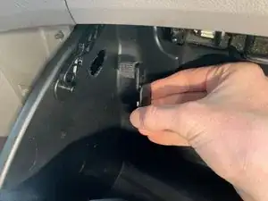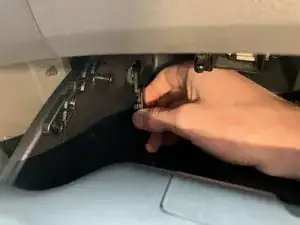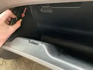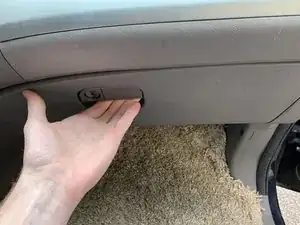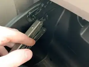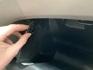 Одной рукой слегка закройте перчаточный ящик, чтобы создать пространство. Другой рукой поверните элемент и потяните наружу (перпендикулярно стенке перчаточного ящика), пока петля не освободится.