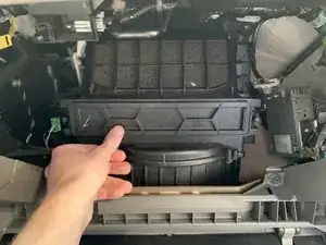 Нажмите внутрь на два пластиковых элемента по обе стороны фильтра и потяните на себя для удаления.