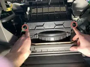 Снимите крышку демпфера с верхней левой стороны (лицом к перчаточному ящику), потянув полукруглый элемент на себя.