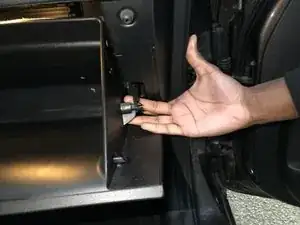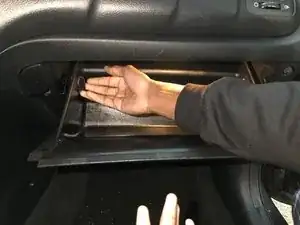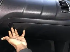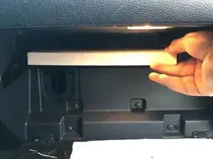 Переместитесь к правой стороне перчаточного ящика и аккуратно снимите черный удерживающий механизм, потянув его вправо.