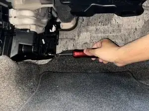 Снимите панель под центральной консолью, потянув снизу, затем сверху.