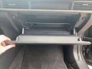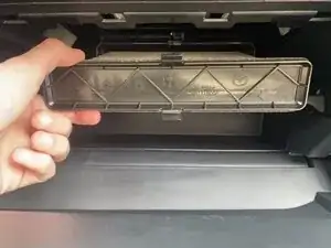 Аккуратно вытащите верхнюю панель бардачка наружу.