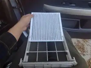 Вставьте новый салонный фильтр в кожух. Разместите фильтр в правильной ориентации, указанной на предыдущем шаге.