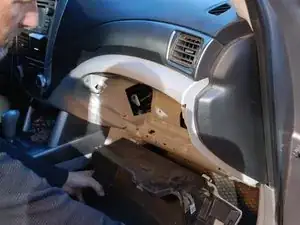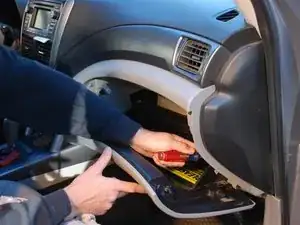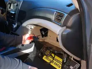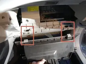 Повторите вставку лезвия отвертки с противоположной стороны бардачка и защёлочного зацепа, пока обе стороны не освободятся и бардачок свободно не откроется.