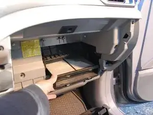 Снимите бардачок, потянув его горизонтально от шарнирных точек в форме буквы C.