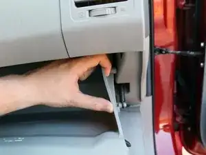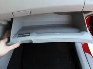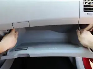 Сожмите две боковые стенки бардачка внутрь, чтобы освободить фиксирующий штырь с каждой стороны.