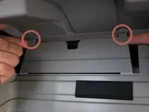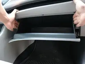 Нажмите внутрь с обеих верхних сторон бардачка, чтобы освободить ограничители.