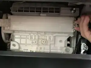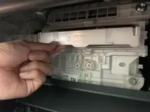 Используйте обе руки, чтобы надавить внутрь и освободить пластиковые держатели с обеих сторон.