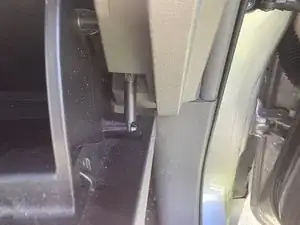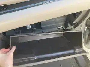 Сдвиньте правую сторону перчаточного ящика влево. Штифт должен выйти из паза.