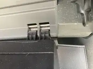 Сожмите один из фиксаторов и потяните одну сторону наружу, частично сняв крышку.