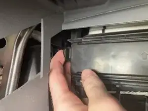 Сожмите второй фиксатор и полностью снимите крышку салонного фильтра.