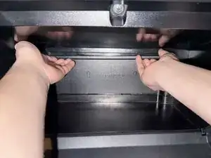 Сдвиньте заднюю крышку бардачка вверх, чтобы освободить её.