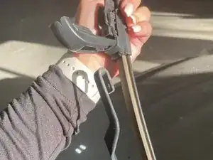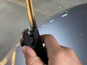 Найдите капотную накладку или защёлку, которая удерживает щётки стеклоочистителя на месте.