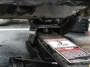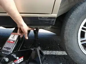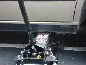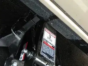 Установите опору домкрата на раму автомобиля, затем снимите гидравлический домкрат.