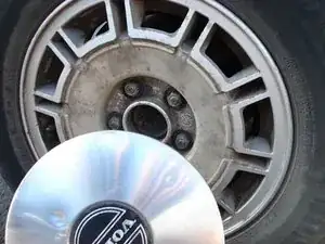 Снимите все четыре колпака ступиц, вставив плоскую отвертку с небольшим лезвием между колпаком и ободом и потянув отвертку в сторону от шины.