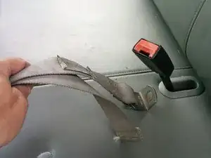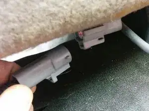 Отсоедините приёмник ремня безопасности от разъёма сигнала ремня безопасности автомобиля — он будет прямо под задней частью сиденья.