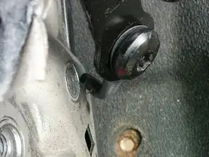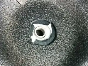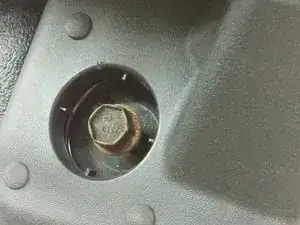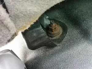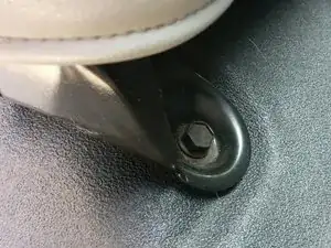 Отрегулируйте сиденье в самое переднее положение. Найдите шпильку с пластиковой защитной заглушкой. Снимите заглушку отвёрткой. С помощью ключа или головки на 18 мм (если позволяет место) открутите болт со шпильки. На моём цельном сиденье было только две шпильки/болта. У других типов сидений их больше. Поднимите сиденье со шпилек и сдвиньте сиденье вперёд от шпилек.