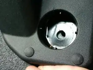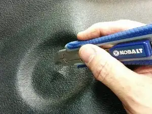 Далее, если кузов грузовика использовал только внешние отверстия, вам нужно найти два отверстия, близкие к тоннелю трансмиссии. Можно нащупать центр пальцем и найти выемку. Возьмите лезвие ножа и аккуратно вырежьте крест (X) поверх отверстия. Осторожно удалите каждую треугольную заглушку, чтобы открыть дополнительное отверстие. Повторите с противоположной стороны.