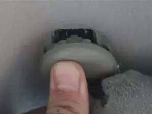 Вставьте поворотный рычаг обратно в козырёк, убедитесь, что металлические зубцы на рычаге совпадают с отверстиями в козырьке.