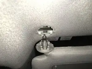 Запомните расположение защёлок шарнирного рычага в салоне автомобиля для повторной установки козырька позже.