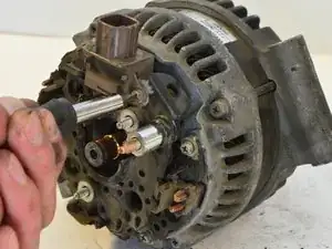 Снимите узел крышки щеток с генератора. Возможно, потребуется вставить иглу в небольшое отверстие, чтобы отделить щетки от ротора. Аккуратно потяните, не прилагая большой силы, чтобы избежать повреждений.
