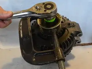 С помощью трещотки и головки 25 мм снимите 25 мм шестигранную гайку со шкива