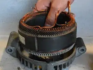 После снятия шкива разделите ротор и статор. Статор — это деталь с медными обмотками.