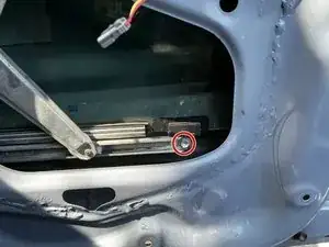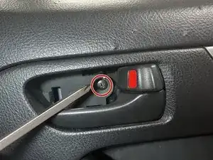 Удалите два винта с дверной обшивки с помощью крестообразной отвёртки Phillips #0.