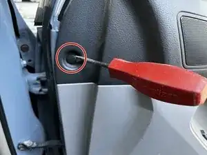 С помощью крючкового инструмента снимите пластиковую панель за дверной ручкой.