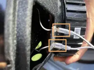 Отключите провода, надавив на боковые части белой защёлки и потянув пальцами.