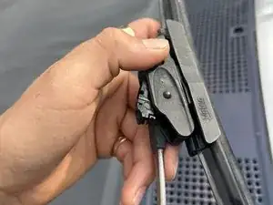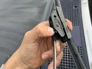 Поднимите зажим, удерживающий лезвие стеклоочистителя.