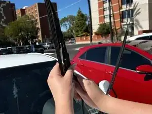 Поставьте рукоятку обратно на окно и повторите на другом стеклоочистителе.