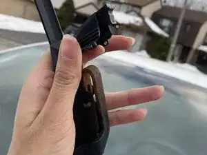 Откройте защелку лопатки дворника, обнажая крючок дворника.