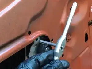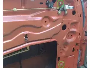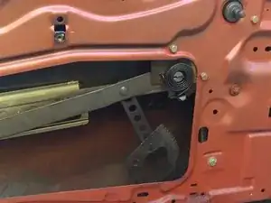 На данном этапе должно стать возможным вытащить стеклоподъёмник, поворачивая его по ходу извлечения, чтобы избежать заедания о детали