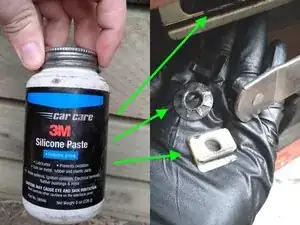 Смажьте нижнюю направляющую стекла и втулки перед сборкой