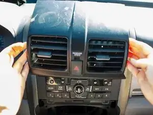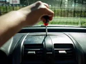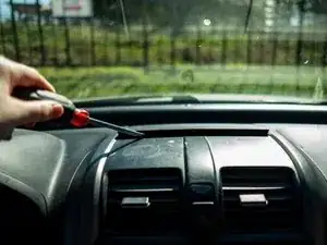 Используйте инструмент для снятия облицовки, чтобы выскоблить верхнюю панель над вентиляционными отверстиями климатической системы.