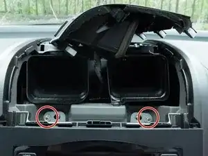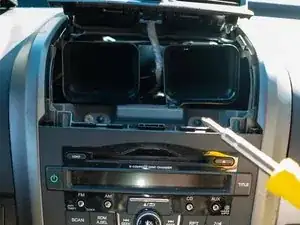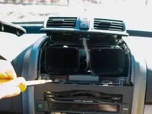 Отверткой Phillips #2 отвинтите два винта 12 мм под блоком магнитолы.
