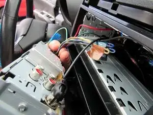 Примечание: Будьте внимательны, чтобы не перерезать чёрный жгут. Чёрный жгут предназначен для CD-чейнджера и при этой установке не используется.