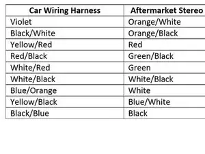 Используйте таблицу слева, чтобы сопоставить правильные провода. Провода, не указанные в таблице, не используются в установке и должны быть либо не разрезаны, либо изолированы концами с помощью электрической ленты.