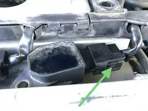 Отсоедините провод свечи, сжав язычки фиксатора с обеих сторон, и потяните его вверх.