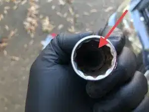 Используйте ключ с храповым механизмом, удлинитель и головку на 5/8 дюйма, чтобы вывернуть свечу, вращая против часовой стрелки, пока она не освободится.