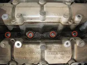 Эти четыре болта следует затягивать с моментом 18 ft-lbs при установке крышки свечей назад.