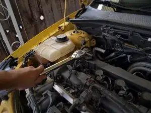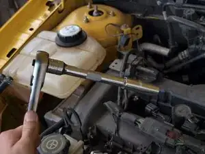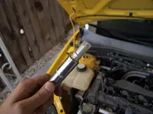 Используйте трещотку с удлинителем и свечную головку 5/8", чтобы выкрутить старую свечу из головки цилиндра. Убедитесь, что свеча полностью зажата в резиновом торце головки перед её ослаблением.