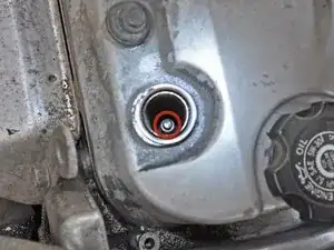 На этом этапе вы можете заглянуть в отверстие свечи зажигания и увидеть верхнюю часть свечи.