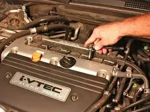 Используйте трещотку, удлинитель и торцевую головку 5/8 дюйма, чтобы затянуть свечу, поворачивая по часовой стрелке. Также подтяните свечу вручную.