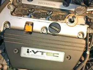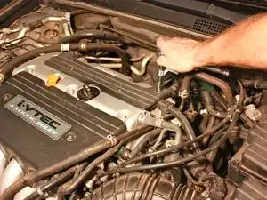 Просуньте руку под капот прямо над эмблемой Honda. Найдите и потяните защёлку капота, чтобы его разблокировать.