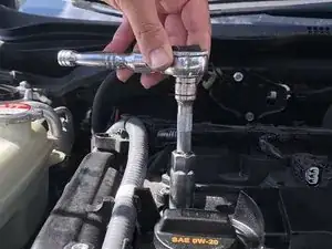Вставьте головку в головку цилиндра и поверните трещотку, чтобы выкрутить свечу зажигания.