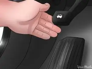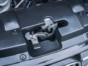 *Может не применяться ко всем автомобилям* Осмотрите крышку двигателя и найдите защёлки, удерживающие её на месте. Если защёлки есть, аккуратно подденьте их плоской отверткой. После того как все защёлки отстегнуты, можно поднять и снять кожух двигателя.